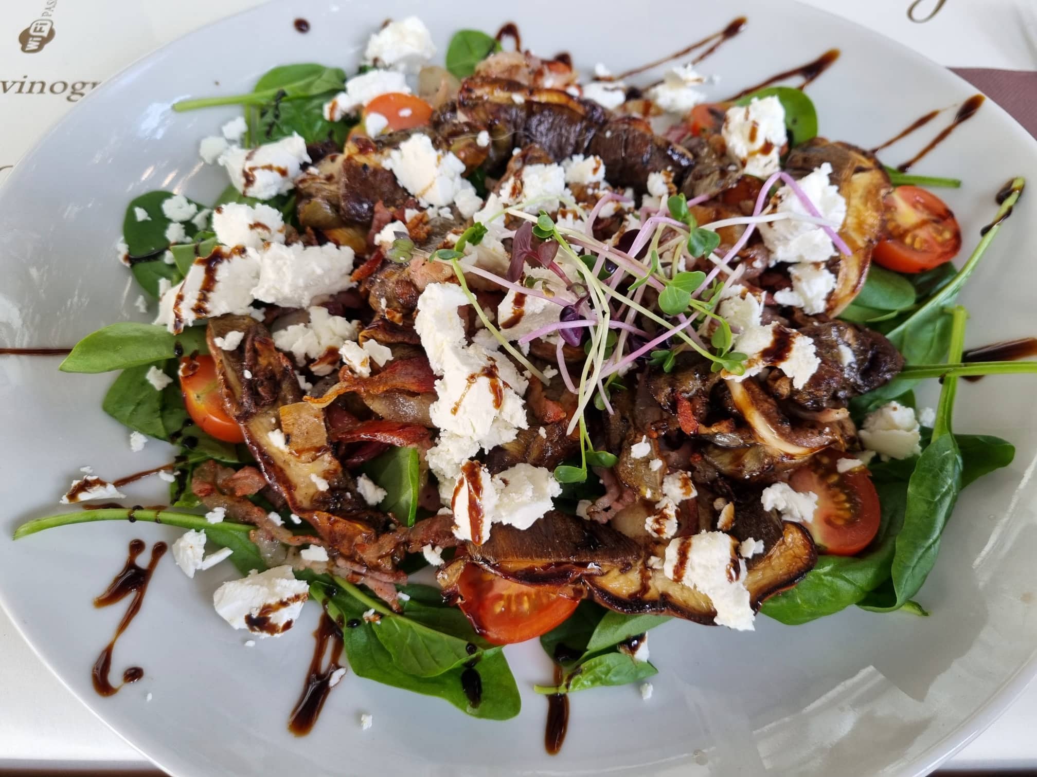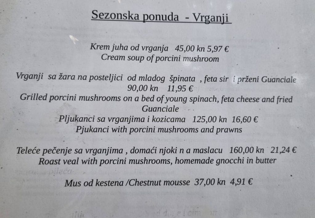 Degustirali smo vrganje sa svježim sirom, przenim Guancialem i mladim špinatom, ma je za polizati prste! Preljubazno osoblje donijelo nam je divotu na tanjuru.