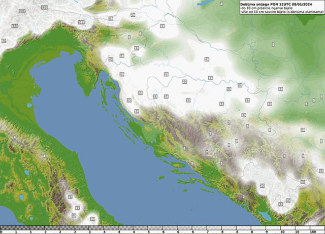 S daljnjim zahladnjenjem, te jačanjem sjeveroistočnog vjetra, mokrog snijega, a zatim i onog koji će se zadržavati na tlu, bit će i u nizinama središnje Hrvatske, a u nedjelju poslijepodne i navečer i u istočnoj Hrvatskoj te unutrašnjosti Dalmacije.