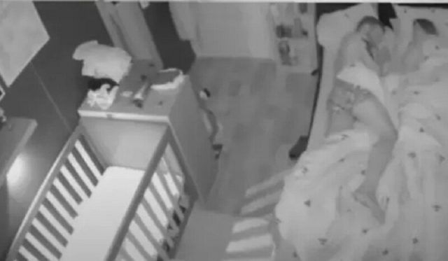 U trenucima dok su spavali stvari su postale čudne. Na lijevoj strani ekrana vidi se madrac na kojem beba leži, koji počinje izgledati kao da se netko gužva i gura, iako u sobi nije bilo nikoga osim njih troje koji su spavali.