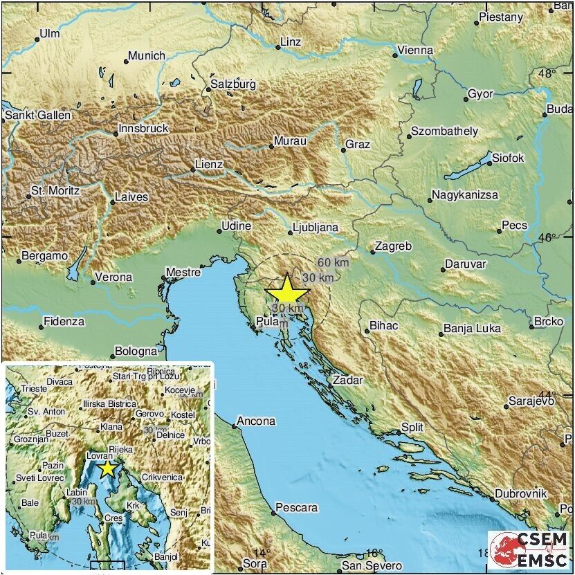 U 20:08 sati stanovnici Kvarnera osjetili su umjeren potres. Epicentar potresa bio je 9 kilometara jugoistočno od Rijeke s epicentrom na zapadnoj strani otoka Krka.