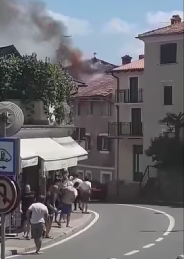 U centru Lovrana je izbio veliki požar na krovu kucće.