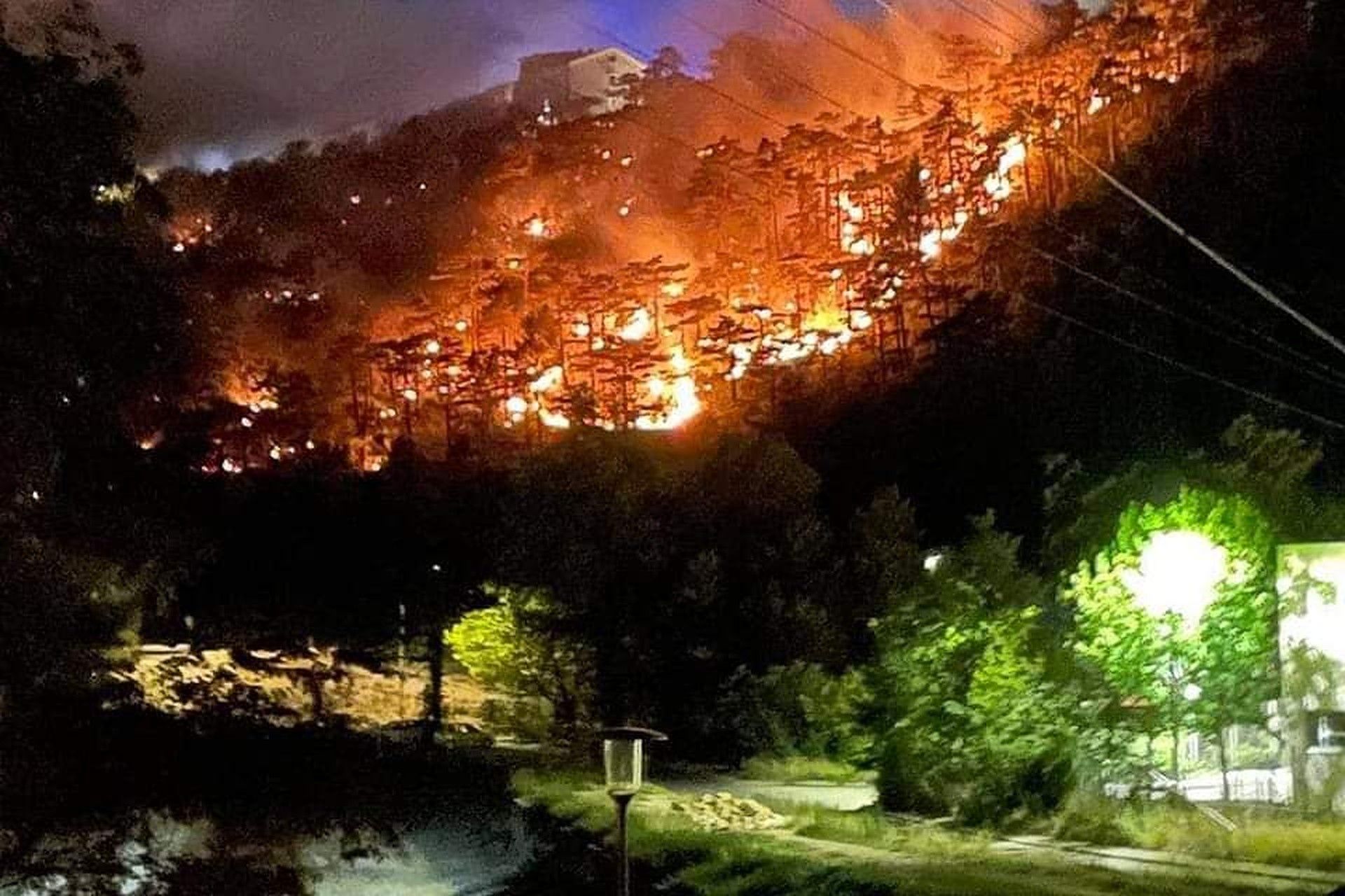 Lokaliziran je požar koji je noćas izbio u Crikvenici. Vatra je zahvatila borovu šumu, a u jednom trenutku je zaprijetila i kućama u predjelu Sopaljske.