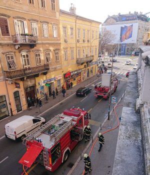 Zbog požara koji je oko 15:30 sati buknuo u zgradi na adresi Trpimirova 6, intervenirala su tri vatrogasna vozila. Prema nepotvrđenim informacijama, zapalila se kuhinja na 4. katu zgrade. Zbog vatrogasne intervencije otežana je promet tim dijelom grada.
