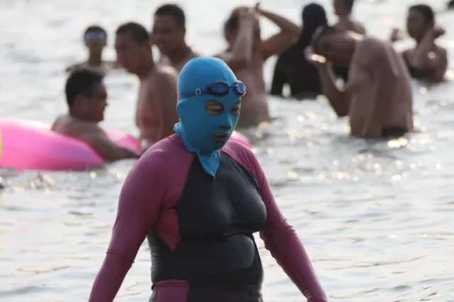 Žene koje se žele u potpunosti zaštititi nose i kupaće kostime koji u potpunosti prekrivaju njihovo tijelo, kao i kišobrane, vizire i sunčane naočale.