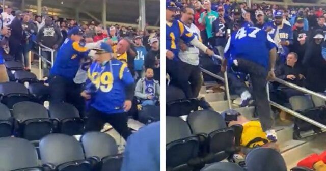 Poletjele su šake, piva i mobiteli, a dvojica navijača Titansa se nisu dobro provela. Obojica su završili nokautirani i pali na stepenice, a jednog od njih dodatno je dok je bio na podu nagazio jedan od navijača Ramsa.