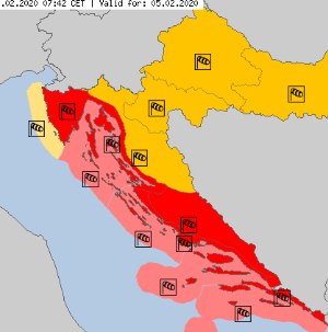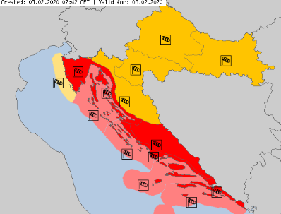 U Dalmaciji će poslijepodne biti orkanskih udara bure i tramontane. Bit će djelomice do pretežno sunčano, temperatura od 6 do 11, no činit će se znatno hladnije.