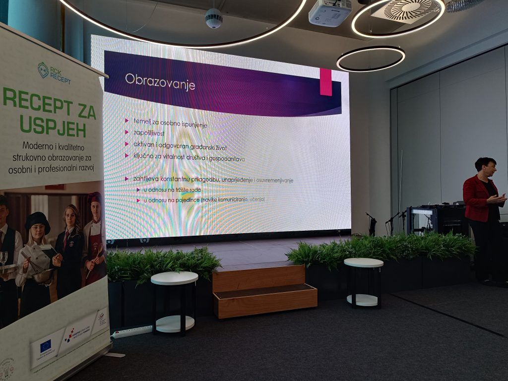 Izrađene smjernice predstavila je Maja Staraj, koordinatorica LAB-a iz Regionalnog centra kompetentnosti Ugostiteljske škole Opatija, uz podršku tima stručnjaka koji su sudjelovali u njihovoj izradi. Promocija je okupila preko 100 ljudi iz cijele Hrvatske, uključujući nastavnike srednjih škola i fakulteta, predstavnike regionalnih centara kompetentnosti i projektnih partnera, donositelje odluka i brojne druge aktere.