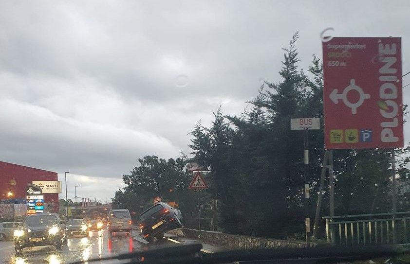 Popodnevni i večernji sati donijeli su velike prometne probleme u zapadnim i istočnim dijelovima Rijeke. Na zapadnom ulazu u Rijeku, kod trgovačkog centra Marti, jedno vozilo je ‘zajahalo’ ogradu uz prometnicu, na Vežici prije ulaska na zaobilaznicu vozilo se okrenulo na krov.