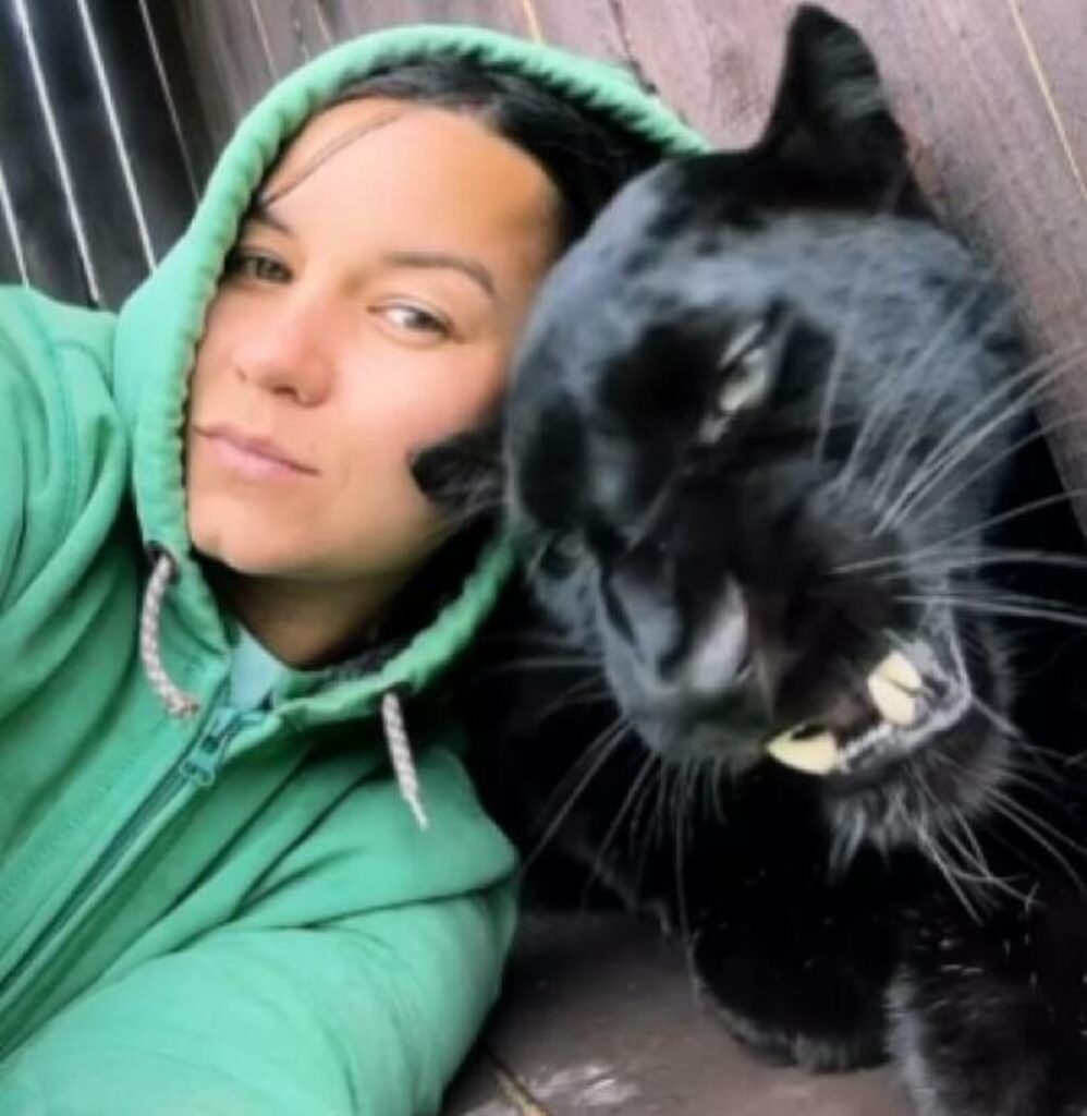 Ova crna pantera odrasla je u drugom okruženju, pa su njen pas i on najbolji prijatelji.