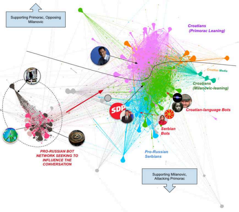 Ove mreže sustavno su promovirale Milanovićeve stavove, šireći poruke protiv Europske unije i NATO-a, dok su istodobno napadale njegovog protukandidata Dragana Primorca.