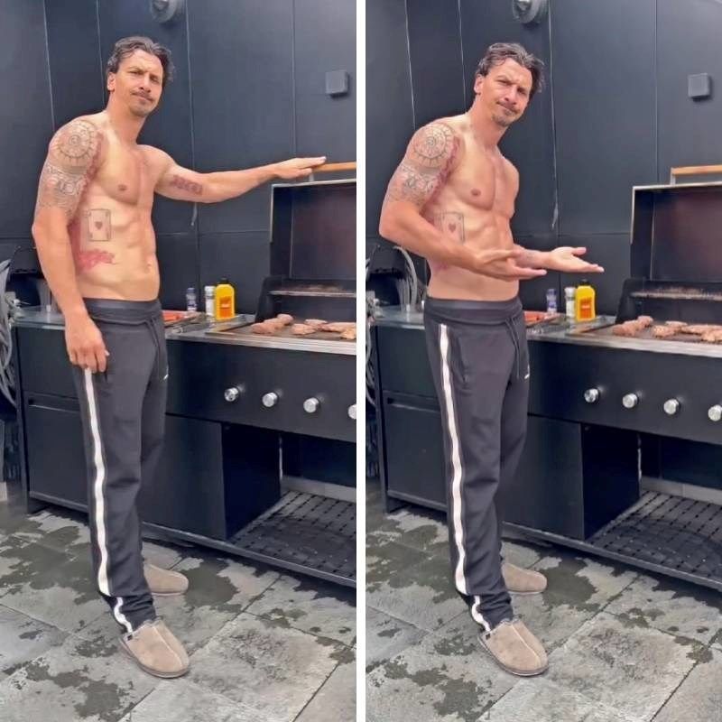 U videu Ibrahimović roštilja bez majice, u donjem dijelu trenirke i papučama – dok u pozadini svira klasik Lepe Brene “Luda za tobom”.