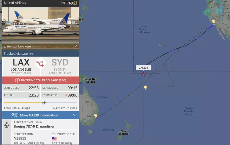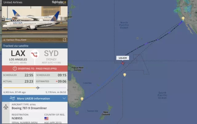 Zamjenski zrakoplov United Airlinesa UA3032 trebao je poletjeti s otočića u 3 sata ujutro 31. prosinca po lokalnom vremenu i stići u Sydney u 7.15 ujutro, 1. siječnja. Budući da se Američka Samoa nalazi nedaleko od međunarodne datumske granice, ubrzo nakon polijetanja, putnici će se naći u 2023. godini, malo nakon četiri sata ujutro.