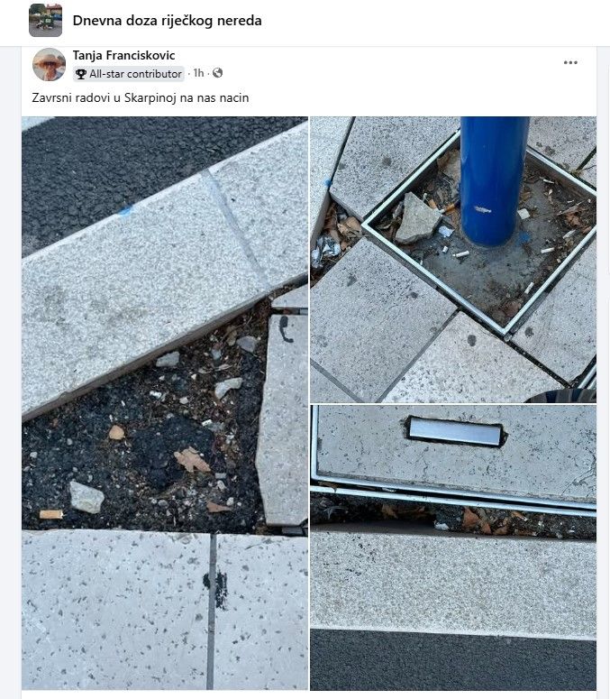 U tijeku je sanacija granitnih ploča u centru Rijeke blizu Scarpine i Trpimirove ulice. Nekolicina građana je već primijetila da su radovi provedeni stihijski i površno. Hoće li Grad intervenirati i tražiti uklanjanje grešaka, ostaje za vidjeti.