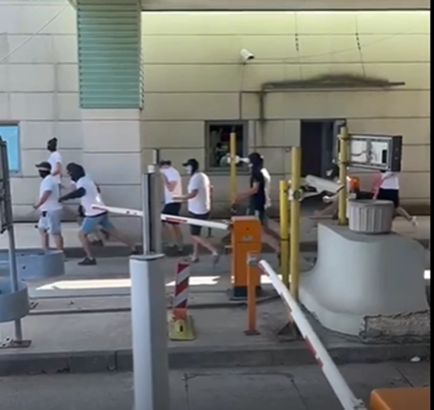 Baš kao rulja s prekrivenim licima su se zaletjeli na naplatne, vidi se da je rampa polomljena. Automobili su ostali prazni na jednoj strani, a oni otišli.
