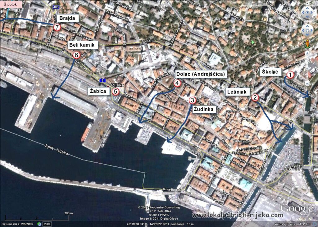 Jedna od najrelevantnijih karta riječkih izvora, izrađena davne 2011. godine. Karta je nastala iz hobija i na temelju tada dostupnih podataka. Iako ne uključuje pritoke, može se reći da je karta prilično precizna. Primjerice, lokacija izvora na Žabici točno je označena. Pri izvođenju radova na tom području, sve je odmah bilo poplavljeno, što potvrđuje prisutnost podzemnih vodenih tokova. Isto vrijedi i za područje Belog kamika, gdje su ronioci morali intervenirati kako bi omogućili nastavak radova.