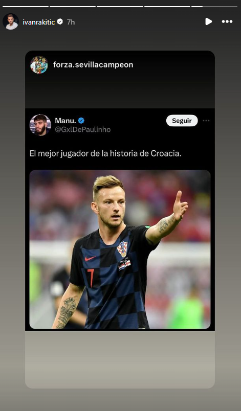 Nakon nedavnog remija Hrvatske s Albanijom (2:2), Rakitić je podijelio znakovitu objavu na svom Instagram profilu, što je privuklo pažnju mnogih. Na Twitteru (X-u) korisnik je objavio njegovu sliku s natpisom na španjolskom jeziku: