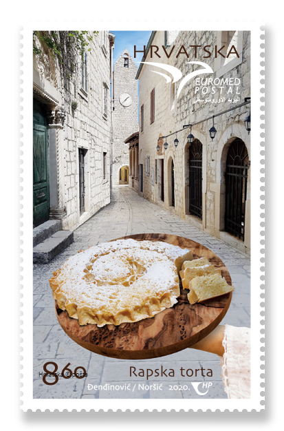 Hrvatska pošta pustit će u optjecaj 13. srpnja prigodnu poštansku marku „PUMed – tradicionalna mediteranska gastronomija.“ Motiv prikazan na marki autorice Ariane Noršić je rapska torta, a prema fotografiji koju je snimio Želimir Đenđinović. Nominalna vrijednost marke je 8,60 kuna i otisnuta je u nakladi od 100.000 primjeraka te u arku od 16 maraka. Hrvatska pošta izdala je i prigodnu omotnicu prvog dana (FDC).