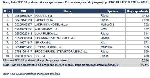 Najveće prihode i najveću dobit razdoblja u 2018. godini među poduzetnicima sa sjedištem u Primorsko-goranskoj županiji, ostvarilo je društvo PLODINE d.d. iz Rijeke.