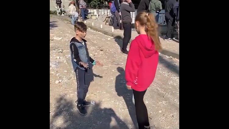 This is the conversation of 6-year-old Marko and 8-year-old Alisa near their house in #Kyiv, which was hit by #Russian missiles fragments.