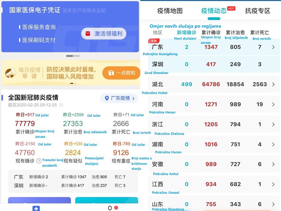 Portal Rijeka Danas je je prvi medij u Hrvatskoj koji direktno objavljuje današnje podatke o broju zaraza sa službene stranice Kineskog ministarstva zdravstva. Dodali smo hrvatski prijevod na grafikonu tako da se može lakše pratiti.