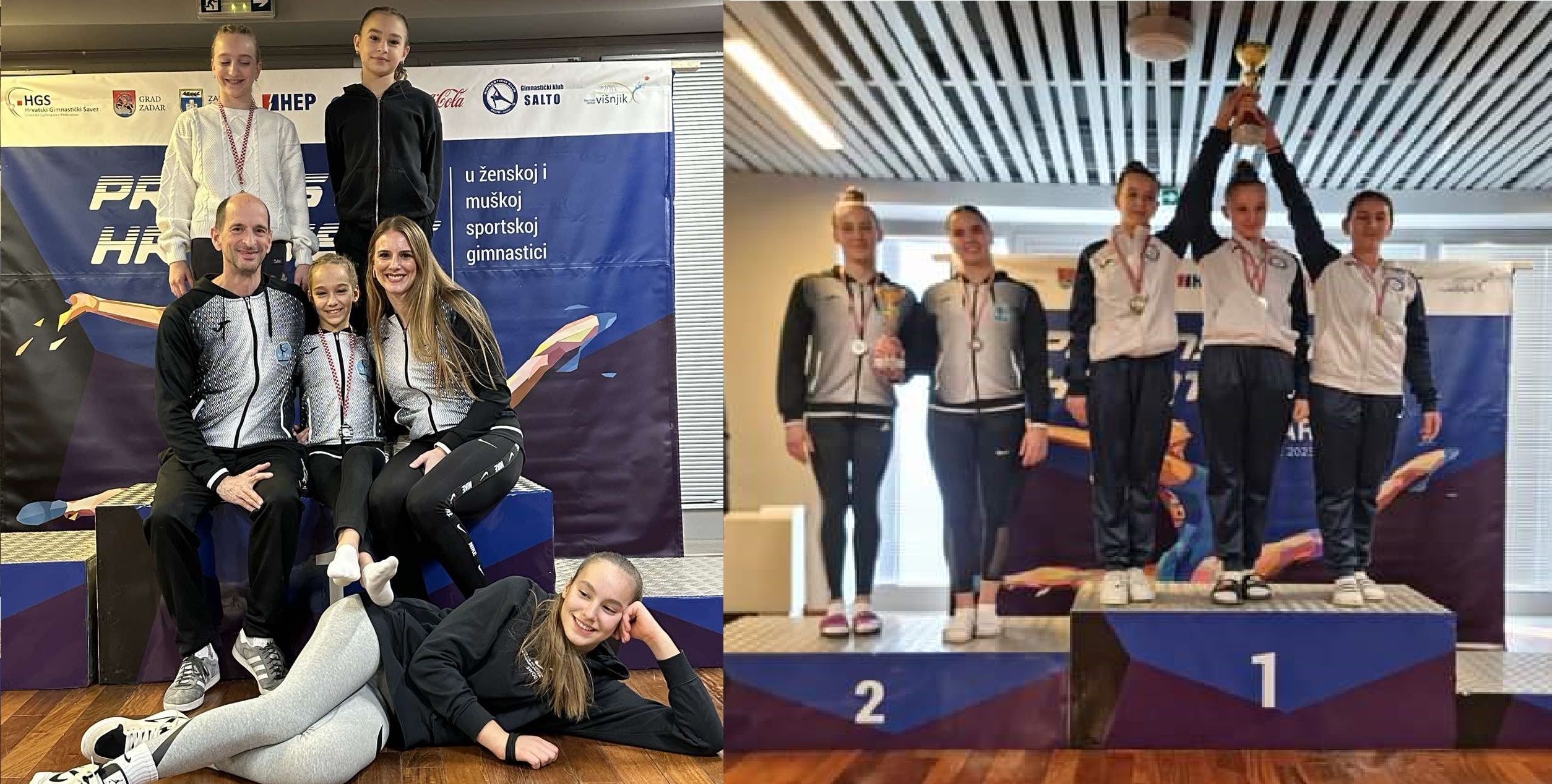 Prvi dan u Apsolutnom i slobodnom programu nastupilo je 8 gimnastičarki našeg Kluba, te smo prvi dan završili s 4 pojedinačne medalje i dvije ekipne.