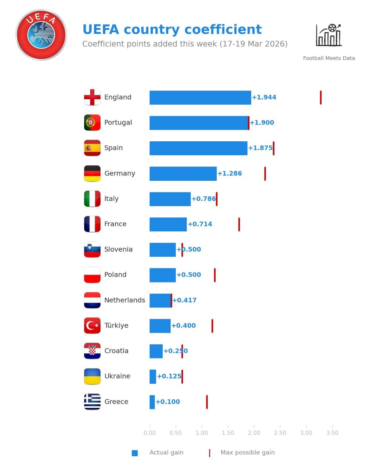 Rijeka je sama donijela 15.125 bodova za Hrvatsku, dok je ukupni nacionalni učinak dosegnuo 27.906, čime je Hrvatska preskočila Izrael i popela se na 20. mjesto UEFA ljestvice.
