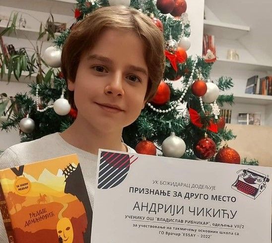 Njegovi su roditelji sada na Facebooku objavili jedan njegov rad za koji je dobio nagradu, prenosi Blic. Time su, kažu, htjeli pokazati natjecateljski rad njihovog sina, kojim je osvojio drugo mjesto na ovogodišnjem natjecanju ‘Essay 2022‘, a esej je pisao na temu ‘Novi početak‘. Dječak u njemu piše o svojim planovima za nastavak školovanja u inozemstvu.