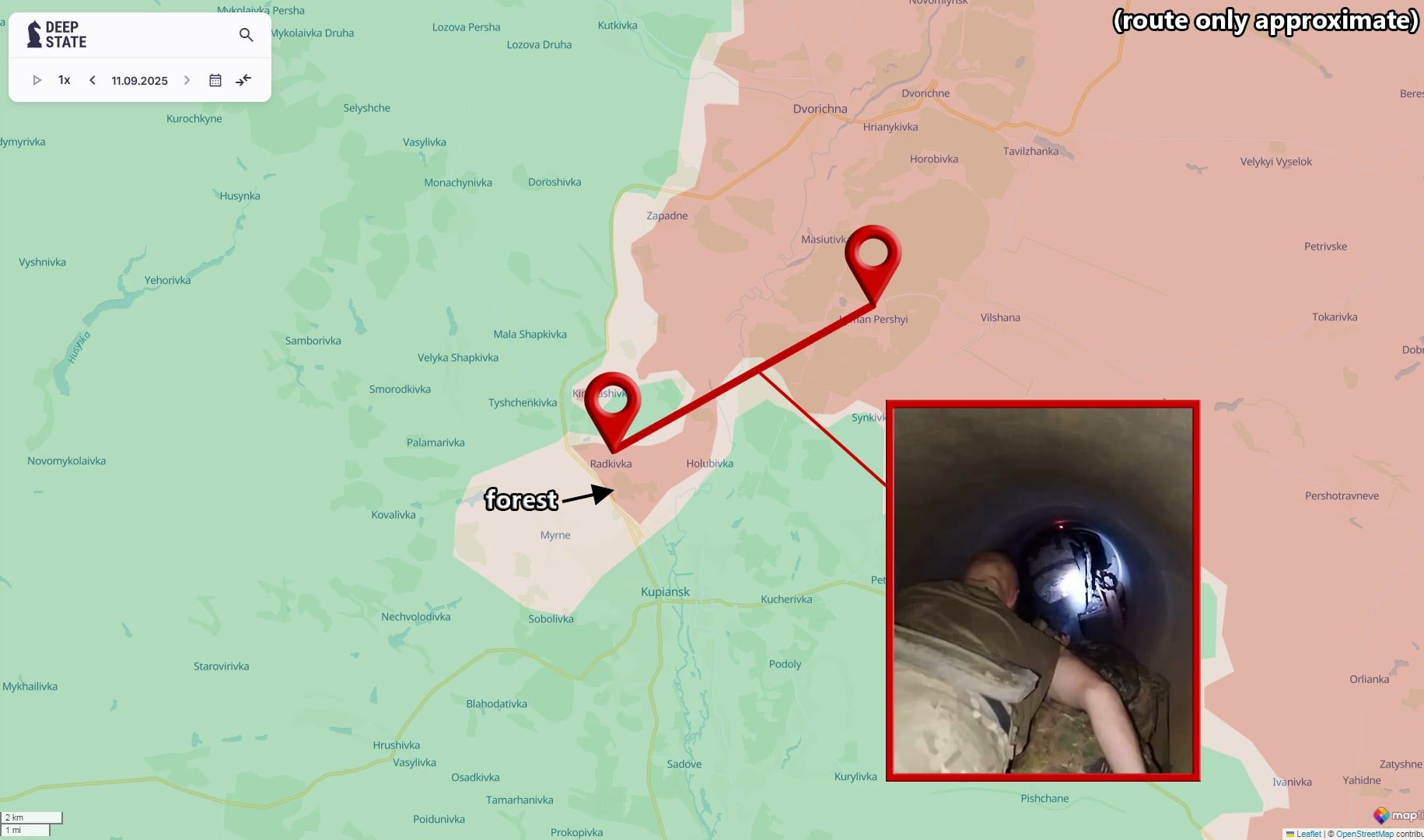 Ovakvom metodom, ruski vojnici mogu neprimjetno stići do Radkivke, potom se spustiti prema šumskom području pod svojom kontrolom i razmjestiti se oko željezničke pruge u Kupjansku. DeepState također navodi da su ruski operateri dronova već uspostavili položaje unutar samog grada.