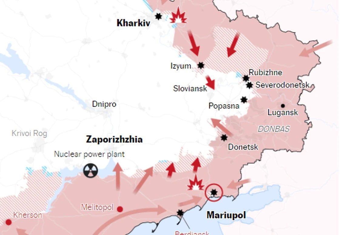 U Donbasu, Lyman uništava rusko topništvo, vjerojatno prije vjerojatne ruske ofenzive duž te osovine: Lyman je 20 km od Slavjanska. Rusko napredovanje na jug od Izjuma i Lymana prema Slavjansku prijetilo bi boku Kramatorska.