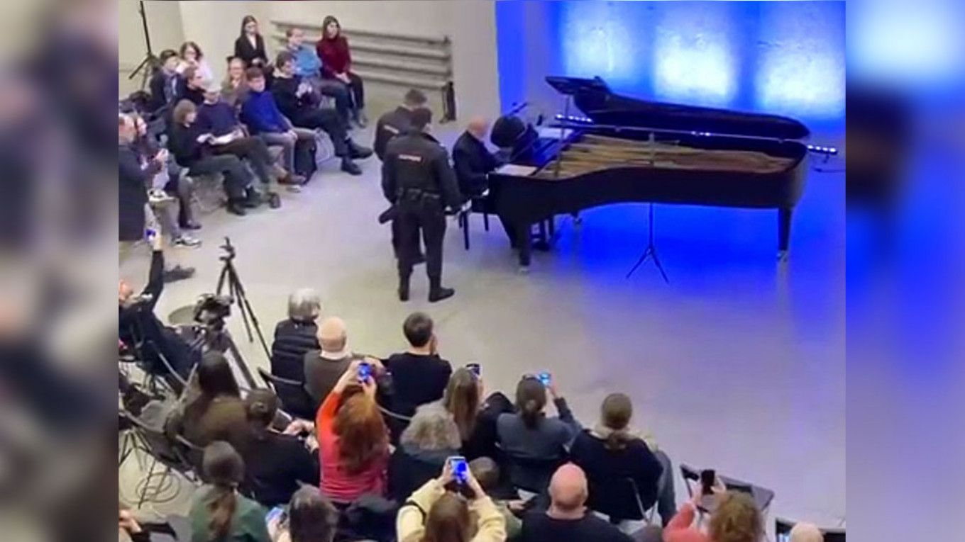 Video iz kulturnog centra Rassvet prikazuje dvojicu uniformiranih policajaca koji ometaju izvedbu ruskog pijanista Alekseja Ljubimova ciklusa pjesama “Stufen” ukrajinskog skladatelja Valentina Silvestrova uz stihove klasičnih ruskih pjesnika.