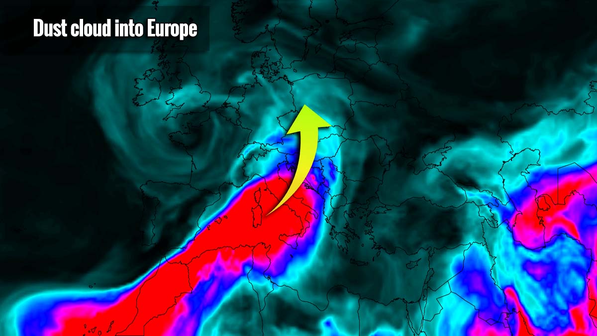 Oblak prašine dolazi iz pustinje Sahara. Kad vjetrovi u gornjem dijelu naše atmosfere uglavnom pušu od jugo-jugozapada prema sjevero-sjeveroistoku, mogu u srednju Europu odnijeti čestice prašine. Saharski pijesak vjetrovi mogu ponekad dovesti i do istočne, zapadne ili sjeverne Europe.