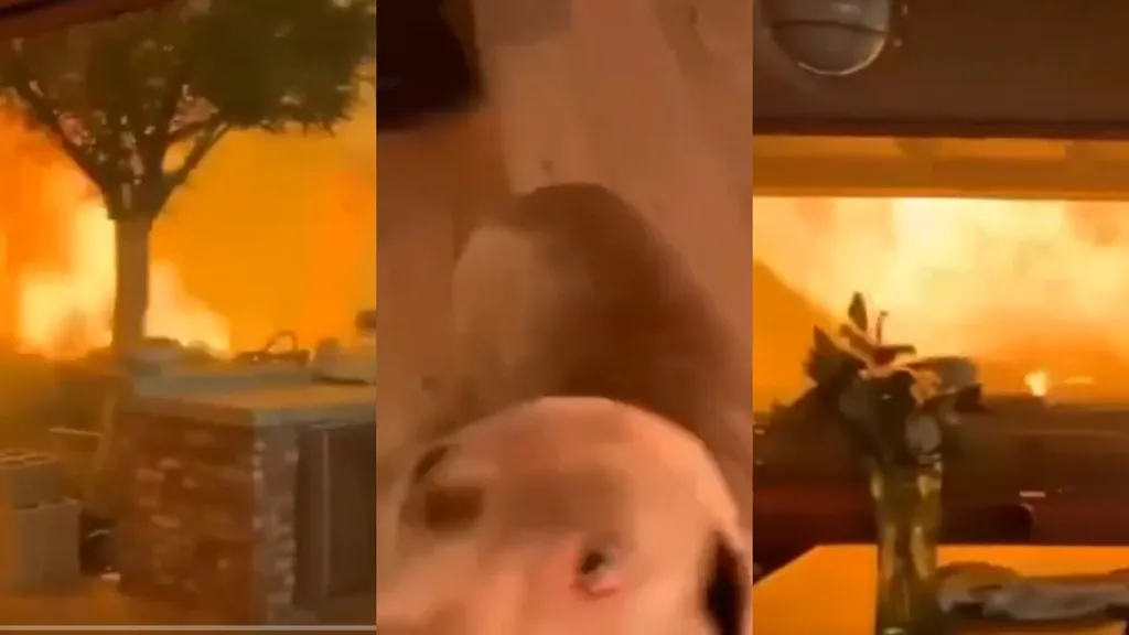 Dramatična snimka koja prikazuje zastrašujuće trenutke dvojice muškaraca i psa koji su ostali zarobljeni u kući okruženoj požarom u Los Angelesu munjevito se širi društvenim mrežama. Jedan od muškaraca snima kaos dok plamen bjesni opasno blizu.