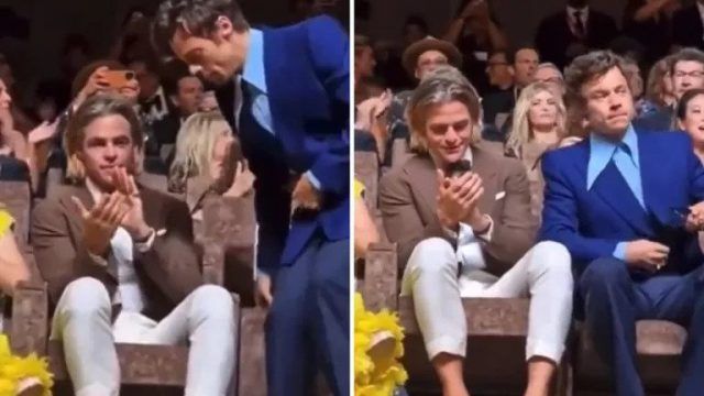 Na snimci se vidi kako Styles sjeda do Pinea koji plješće. Samo nekoliko trenutaka prije nego što sjedne, Stylesove usne se malo pomaknu, a Chris Pine zatim pogleda u svoje krilo ili stopala, zadrži kiseli smješak te prestane pljeskati.
