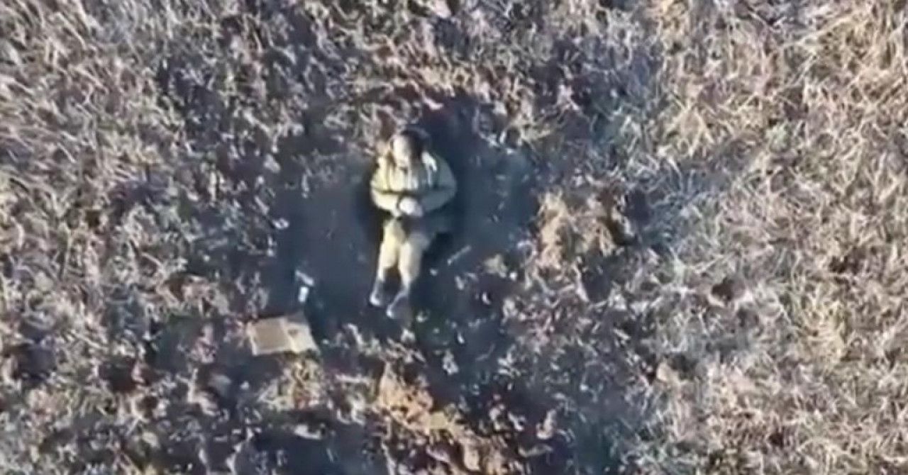 Isti tako društvenim mrežama se proširila snimka dronom jedog vojnika koji sam leži usred polja i doslovce se trese od hladnoće.