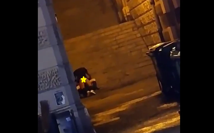 U videu, par se u gluho doba noći očito zaigrao ne mareći za poglede prolaznika.