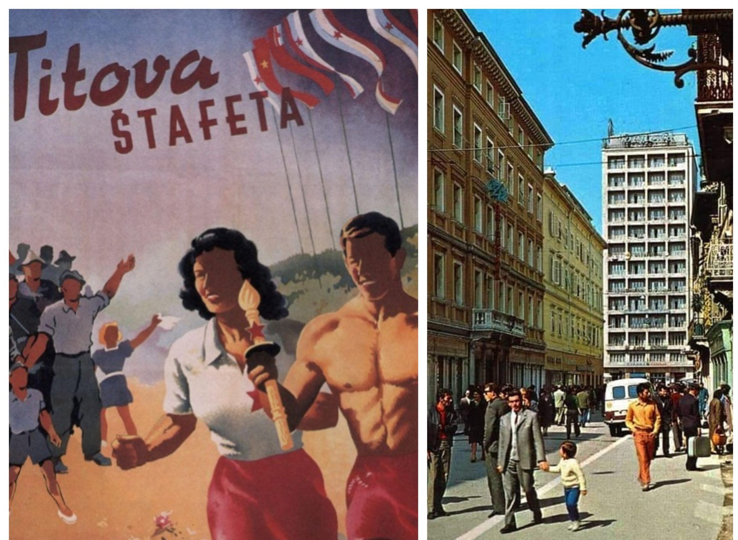 Naravno da bi štafeta prošla i kroz Rijeku. Na ulice bi nahrupila gomila ljudi te uz pljesak i skandiranje „živio drug Tito!”pratila njen put. Štafeta je išla iz ruke u ruku. Bila je velika čast biti odabran za tu ulogu, a za to su dolazili u obzir samo oni najzaslužniji. Učenici iz određenih škola su također prenosili štafetu. Jedan je trčao sa štafetom u ruci, a pratila ga je grupa. Svi su, naravno, imali plavu kapu s petokrakom zvijezdom na glavi i crvenu maramu oko vrata.