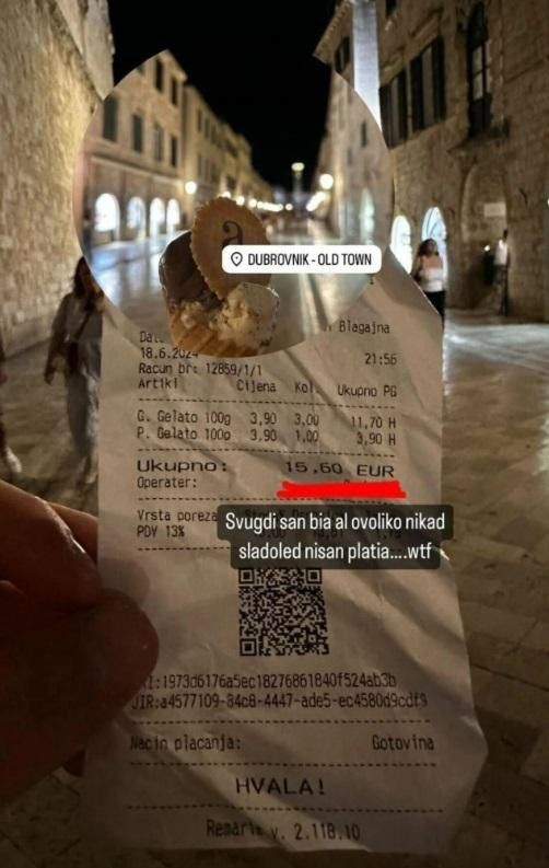 To se dogodilo jednom posjetitelju Dubrovnika, koji je svoje zaprepaštenje, pogledavši uredno plaćen račun za sladoled za sebe i društvo, podijelio na društvenim mrežama.