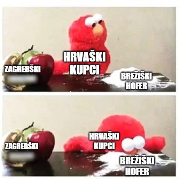 Jedan od popularnih memova prikazuje lik Elma iz Ulice Sezam kako bira brežički Hofer umjesto jednog poznatog hrvatskog trgovačkog lanca. Dan kasnije pojavile su se nove šale nakon što su mnogi Hrvati naišli na zatvorena vrata slovenskih trgovina zbog Prešernovog dana, državnog praznika 8. veljače.