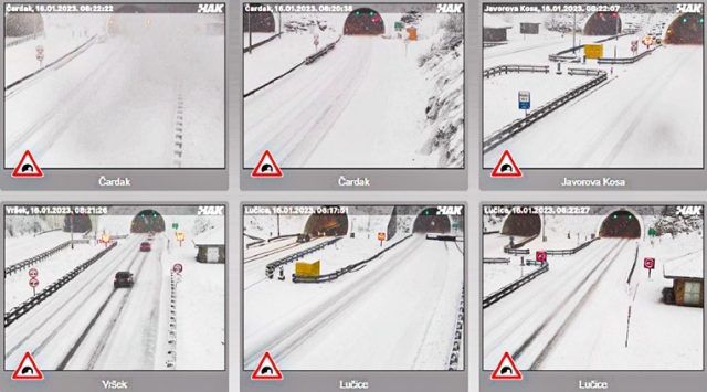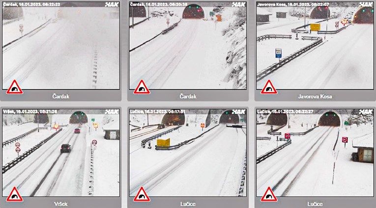 Zbog vozila bez zimske opreme na autocesti A6 Rijeka-Zagreb između čvorova Vrbovsko i Ravna Gora u smjeru Rijeke zastoj je u prometu, a na autocestama se u ponedjeljak ujutro dogodilo i nekoliko prometnih nesreća, izvijestio je Hrvatski autoklub (HAK). Zbog prometne nesreće nakon izlaza iz tunela na autocesti A6 u tunelu Tuhobić u smjeru Zagreba vozi se jednim trakom uz ograničenje brzine 60 km na sat.