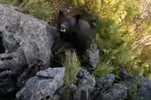 Videozapis, za koji se čini da je snimljen kamerom na kacigi, prikazuje čovjeka kako zamahuje rukama i nogama prema medvjedu dok ovaj bijesno pucketa čeljustima. Nakon 30-ak sekundi borbe za život, medvjedica je pobjegla s mladunčetom koje se pojavilo iz grmlja jer je slijedilo majku. To je na kraju i objašnjenje agresije koju je medvjed pokazao prema čovjeku.