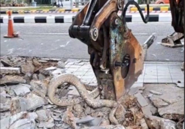 Naime, društvenim mrežama kruži video na kojem cestar čisteći nogostup u gradu, čija nam lokacija nije poznata, nailazi na golemu zmiju.