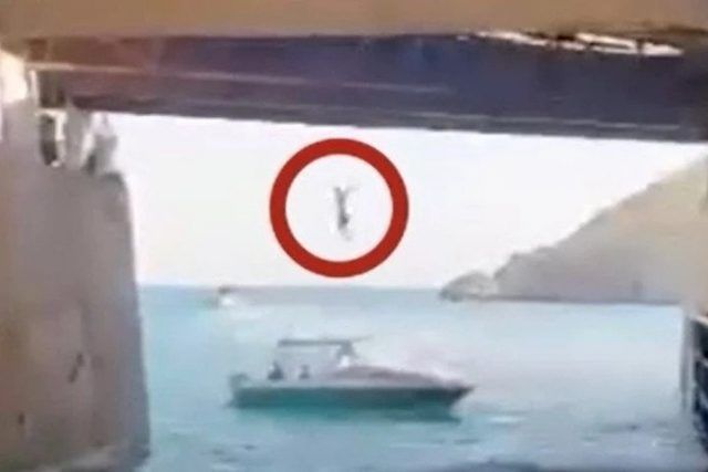 Na njemu se vidi kako brod s turistima prolazi ispod mosta s kojeg skaču mladići, a nekoliko sekundi kasnije jedan od njih iznenada pada s njega. Prema riječima očevidaca, nitko nije očekivao ovakav razvoj događaja. Turisti su samo željeli uhvatiti pogled na planine i more, no svjedočili su vrlo čudnom događaju.