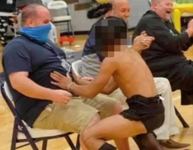 Stanovnike grada u američkoj državi Kentucky šokirale su fotografije na kojima se vidi kako učenici za vrijeme školske predstave plešu u krilu nastavnicima i ravnatelju (koji je ujedno i gradonačelnik).