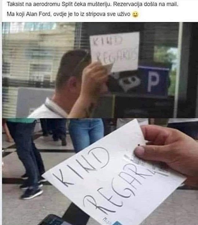 Naime, jedan taksist je na aerodromu dočekivao gosta čije je ime, prema njegovom uvjerenju, bilo “Kind Regards”. Naravno, riječ je o uobičajenom završetku poruke na engleskom jeziku, što znači “lijep pozdrav”.