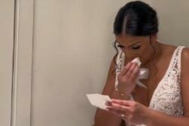 – Za tvoje prvorođenče, ovo je pripremljeno za tebe, na dan vjenčanja mene i tvoje majke 2023. Htio sam dobiti nešto što će trajati godinama i što ćeš nositi na dan kad siđeš pred oltar… – čita mladenka u videu boreći se sa suzama.