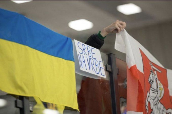 Srpsku hokejašku reprezentaciju na utakmici SP-a divizije IB dočekao je gnjusan transparent iznad njene klupe. Na meču protiv Ukrajine bile su obješene ukrajinska i neslužbena bjeloruska zastava Pahonija, koju koristi oporba diktatorskom predsjedniku i Putinovom savezniku Lukašenku. Između njih umetnut je mali transparent s natpisom “Srbe na vrbe”.