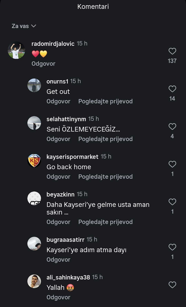 Podsjetimo, Kayserispor je do kraja prošle sezone vodio Sergej Jakirović, koji je klub izvukao iz teške situacije i zadržao u prvoj ligi, nakon čega je preuzeo engleski Hull City.
