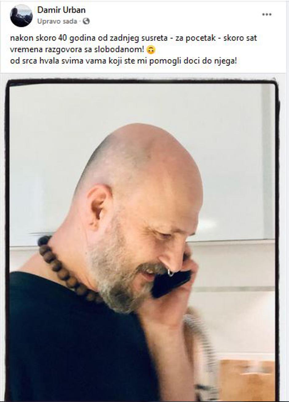 Nešto više od 12 sati trebalo je da riječki glazbenik Damir Urban uz pomoć svojih prijatelja na društvenim mrežama pronađe svog najboljeg prijatelja iz djetinjstva s kojim je davno izgubio svaki kontakt. Sretnim krajem potrage Urban se pohvalio na svom profilu uz fotografiju koja prikazuje odlično raspoloženog pjevača dok telefonira sa Slobodanom. “Nakon skoro 40 godina od zadnjeg susreta – za početak – skoro sat vremena razgovora sa Slobodanom! Od srca hvala svima vama koji ste mi pomogli doći do njega!” napisao je Urban.