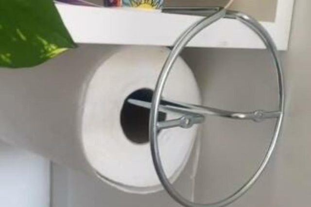 Žena je izbočeni kraj držača zakačila za policu, odnosno viseći kuhinjski element i tako olakšala uzimanje papirnatog ručnika.