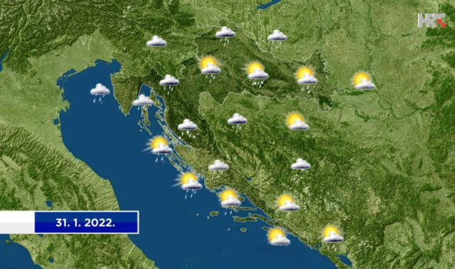 U naše krajeve stiže porast naoblake sa zapada. Kiše će od sredine dana mjestimice biti na sjevernom Jadranu i u gorju, poslijepodne u središnjoj Hrvatskoj i Dalmaciji, a zatim na istoku i jugu, dok će krajem dana uz zahladnjenje kiša ponegdje u unutrašnjosti prelaziti u susnježicu, u gorju i snijeg.
